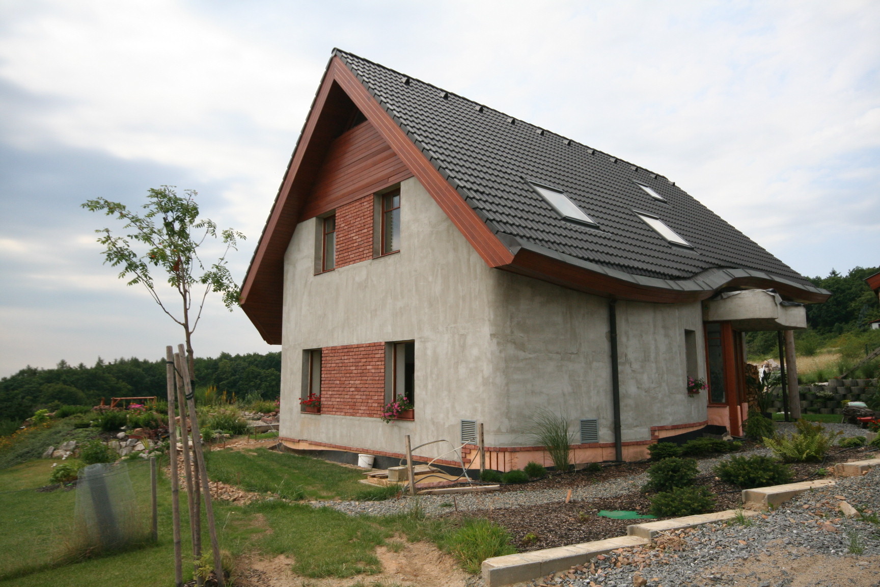Proyecto de casa familiar de bajo consumo energético en Černolice, cerca de Praga, que incluye geomancia y feng shui.