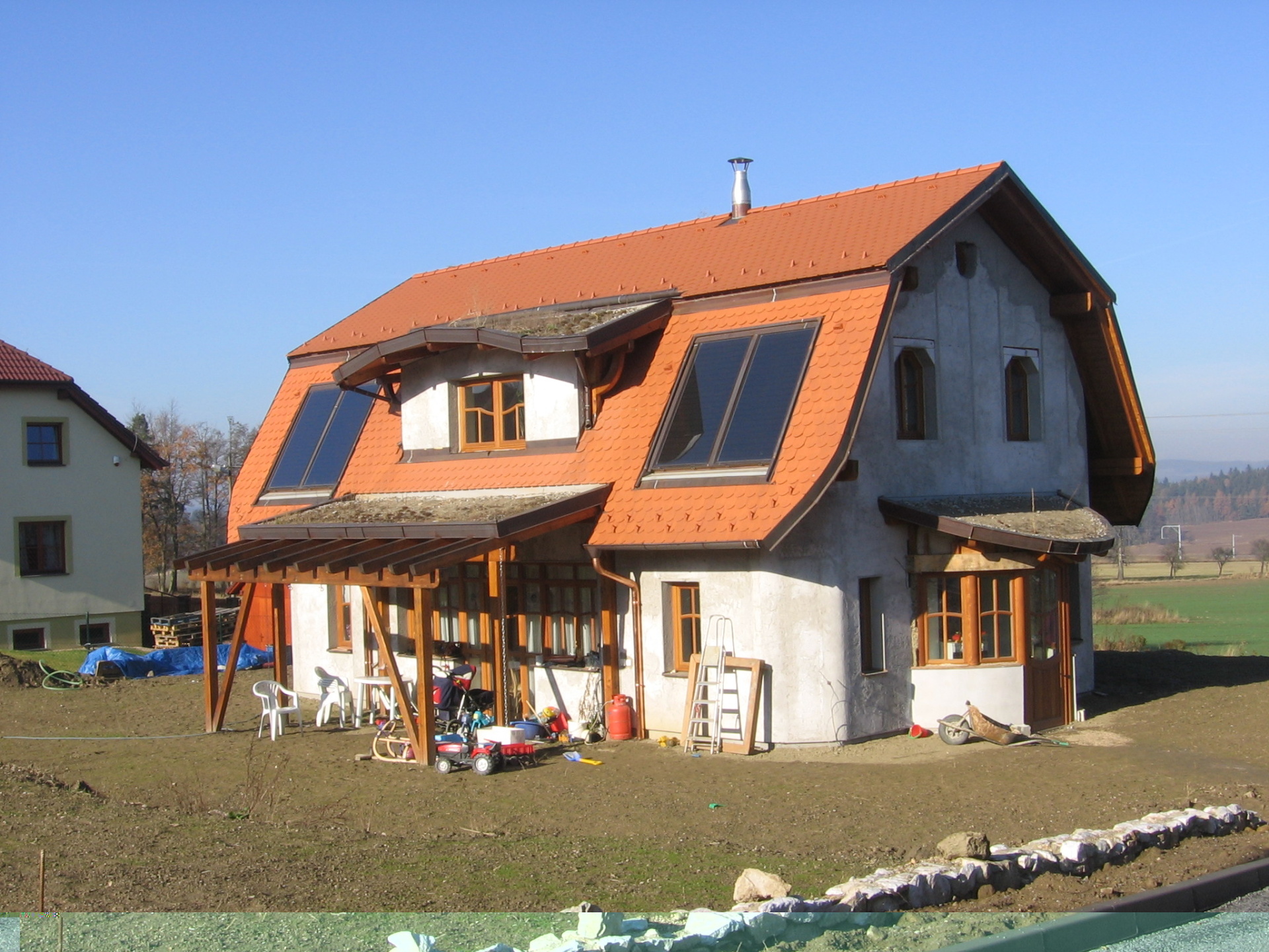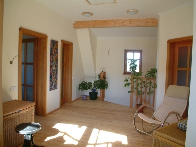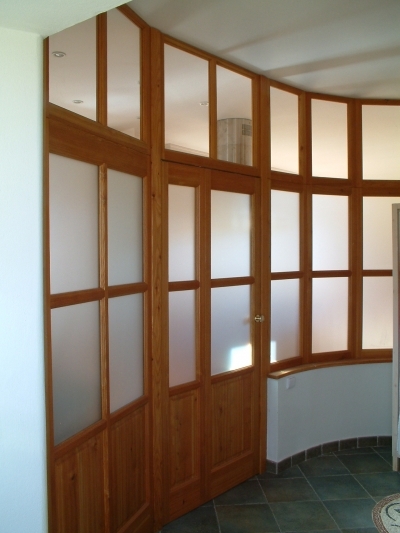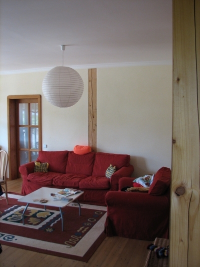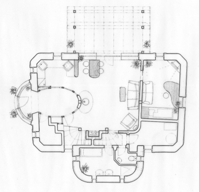 En la propiedad, he centrado las líneas sobre las emanaciones de aguas subterráneas. Yo tracé las líneas y el topógrafo las marcó en el plano de la parcela. Cuando diseñé los planos de distribución, los adapté para que las líneas de radiación por encima del nivel freático discurrieran por los muros perimetrales y los tabiques. Así, las camas pueden colocarse en lugares con energía neutra. Los residentes descansan mejor por la noche porque su fluido corporal no se ve perturbado por la resonancia con el agua subterránea en movimiento activo que se desplaza constantemente bajo tierra. Todas las camas están orientadas de forma que el durmiente tenga una pared completa detrás de la cabeza y pueda ver claramente la puerta de entrada a la habitación. La casa tiene una energía muy suave y tranquila y los interiores tienen un buen efecto en la psique de sus habitantes.