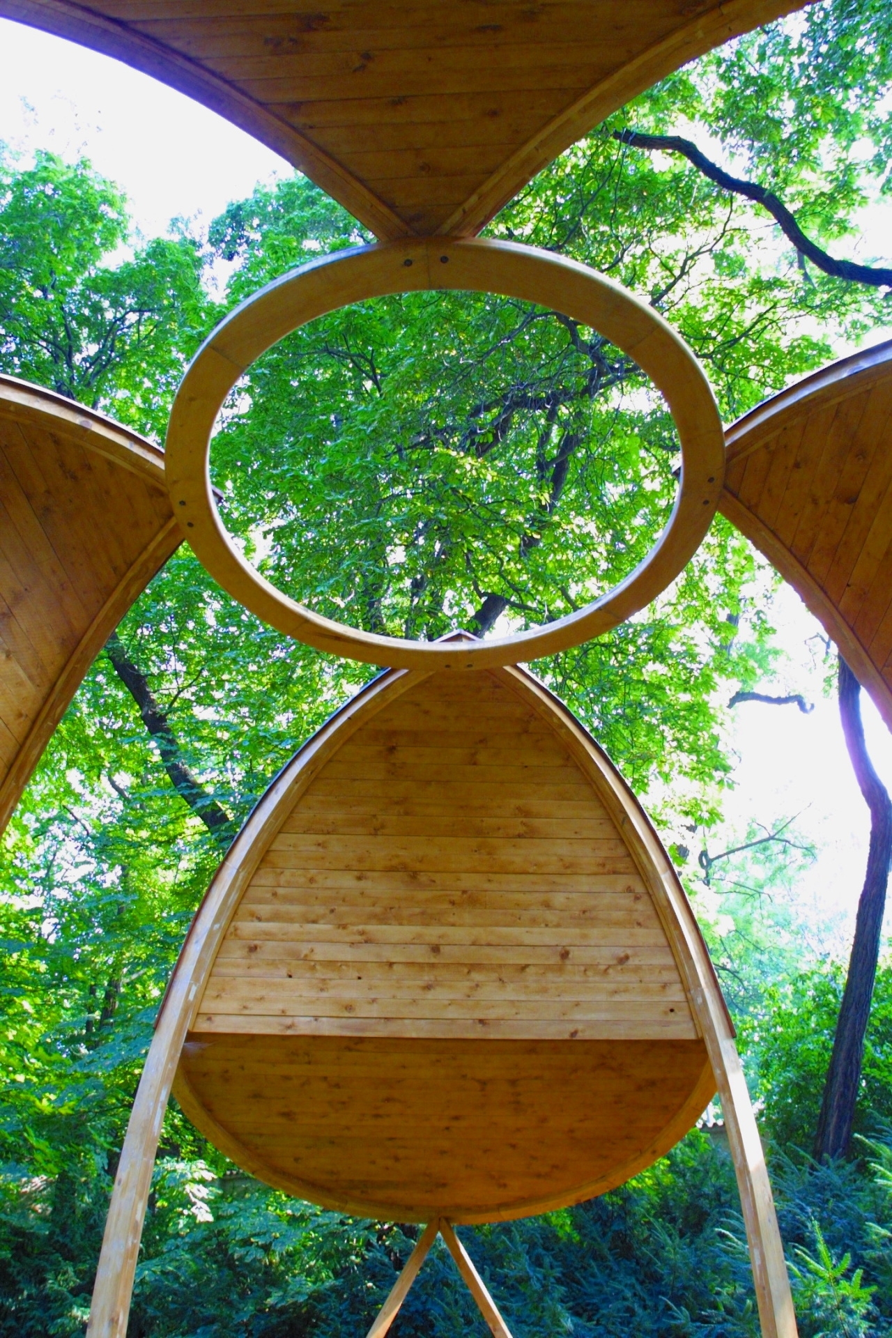 La forma del cenador de meditación se basa en las formas de la naturaleza. Las costillas de soporte tienen la forma de una parte de una espiral de sección dorada. Las partes individuales del cenador también están en proporción áurea entre sí. De este modo, todo el objeto tiene un efecto armonizador en el espacio. El arquetipo de la forma está formado por una bóveda aérea en parte cerrada y en parte abierta. Puede elegir dónde se siente mejor cuando se relaja en el cenador.