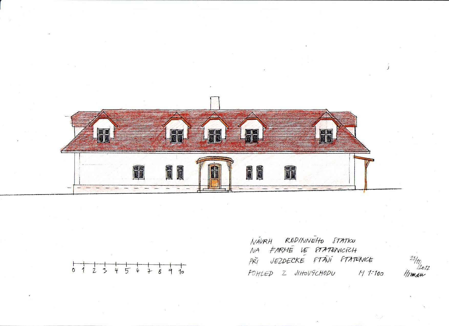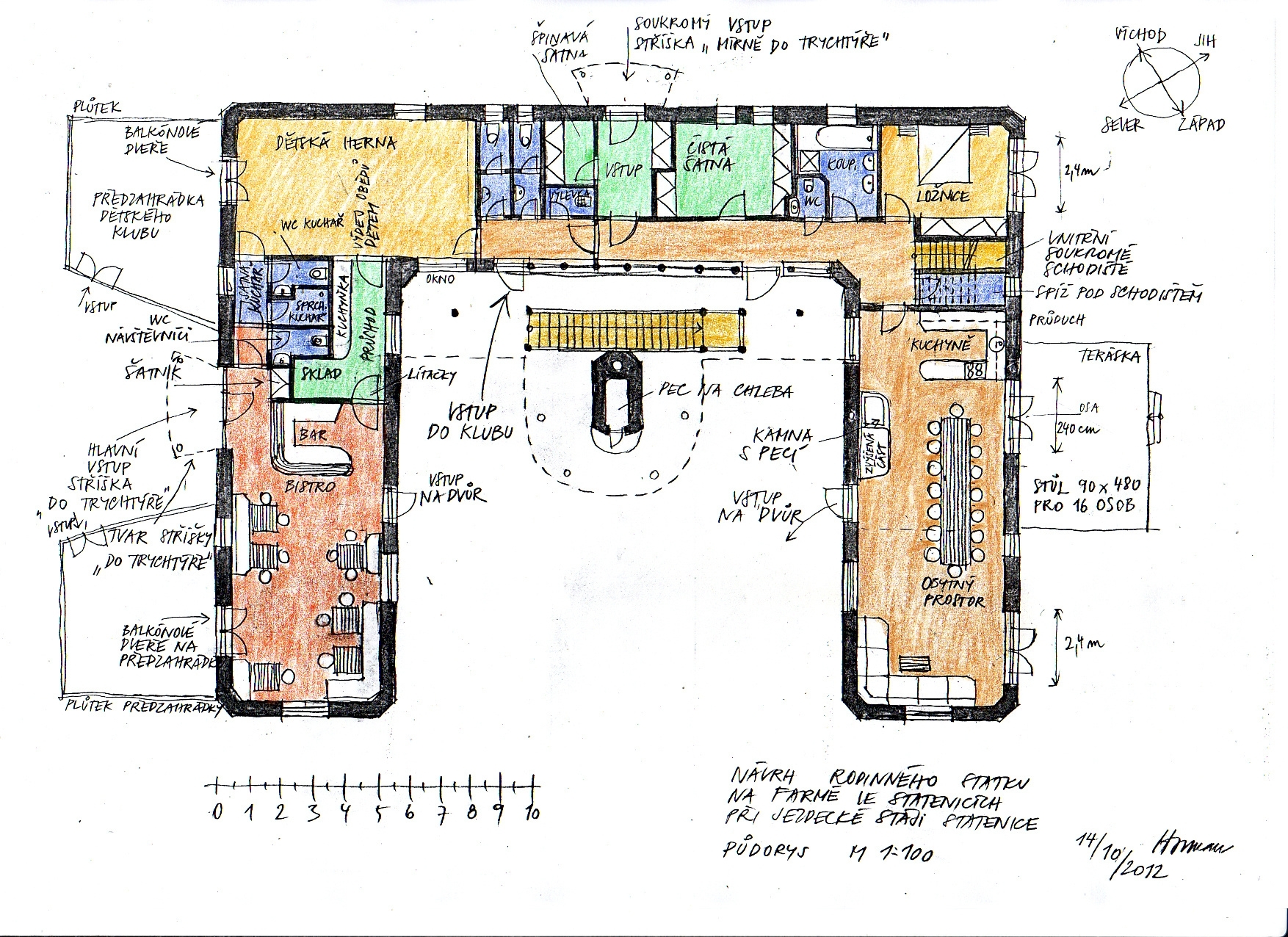Estudio arquitectónico de una granja familiar en la caballeriza de Statenice u Prahy. Además de viviendas y alojamiento, la propuesta de la granja también incluye un club infantil y un bistró para los visitantes de la granja. Dentro del patio hay un horno para hornear el pan. El diseño incorpora los principios del feng shui.