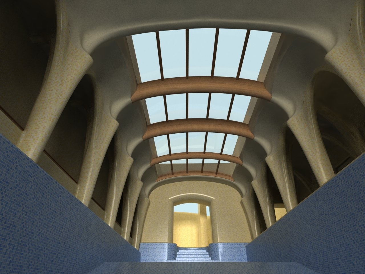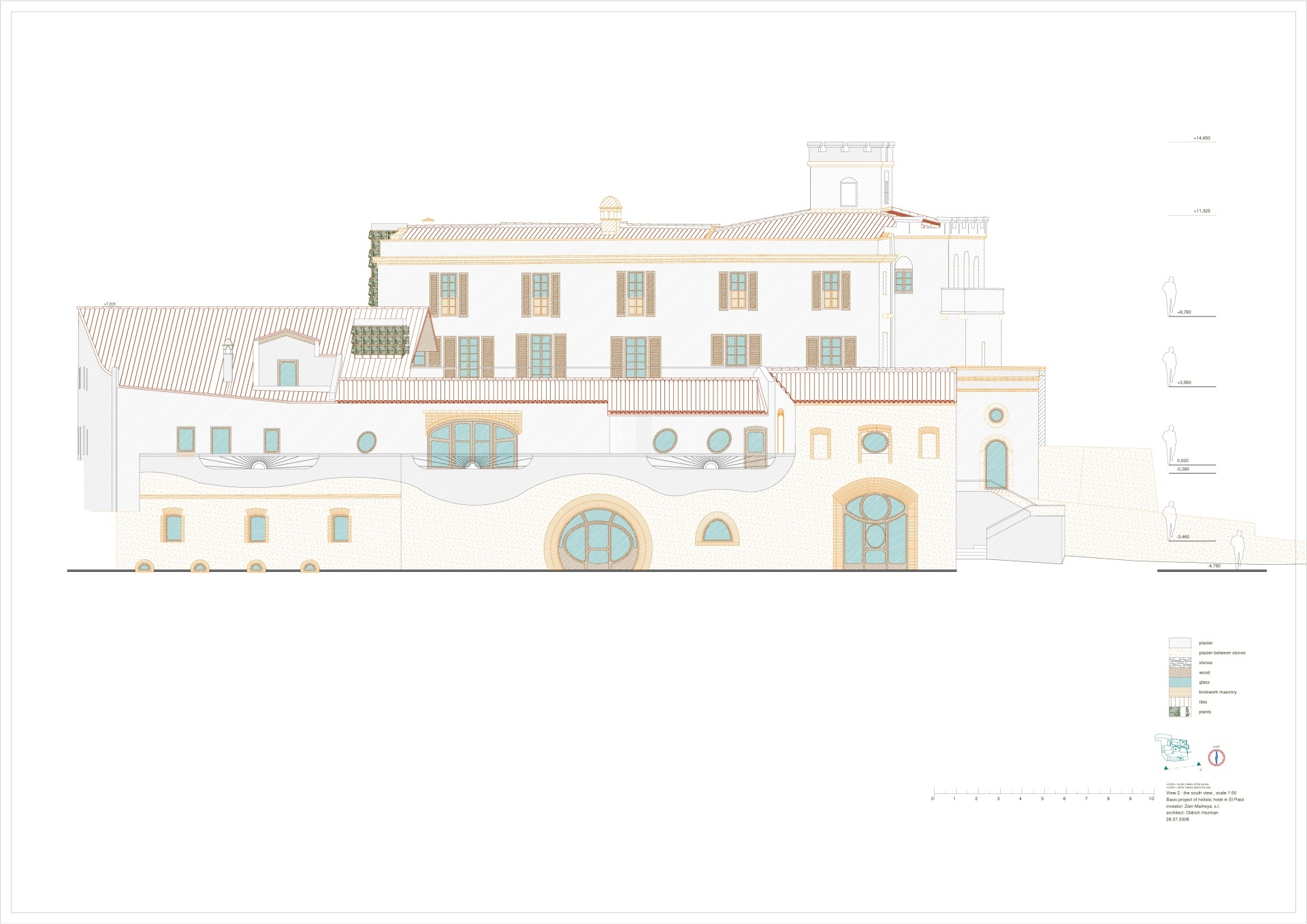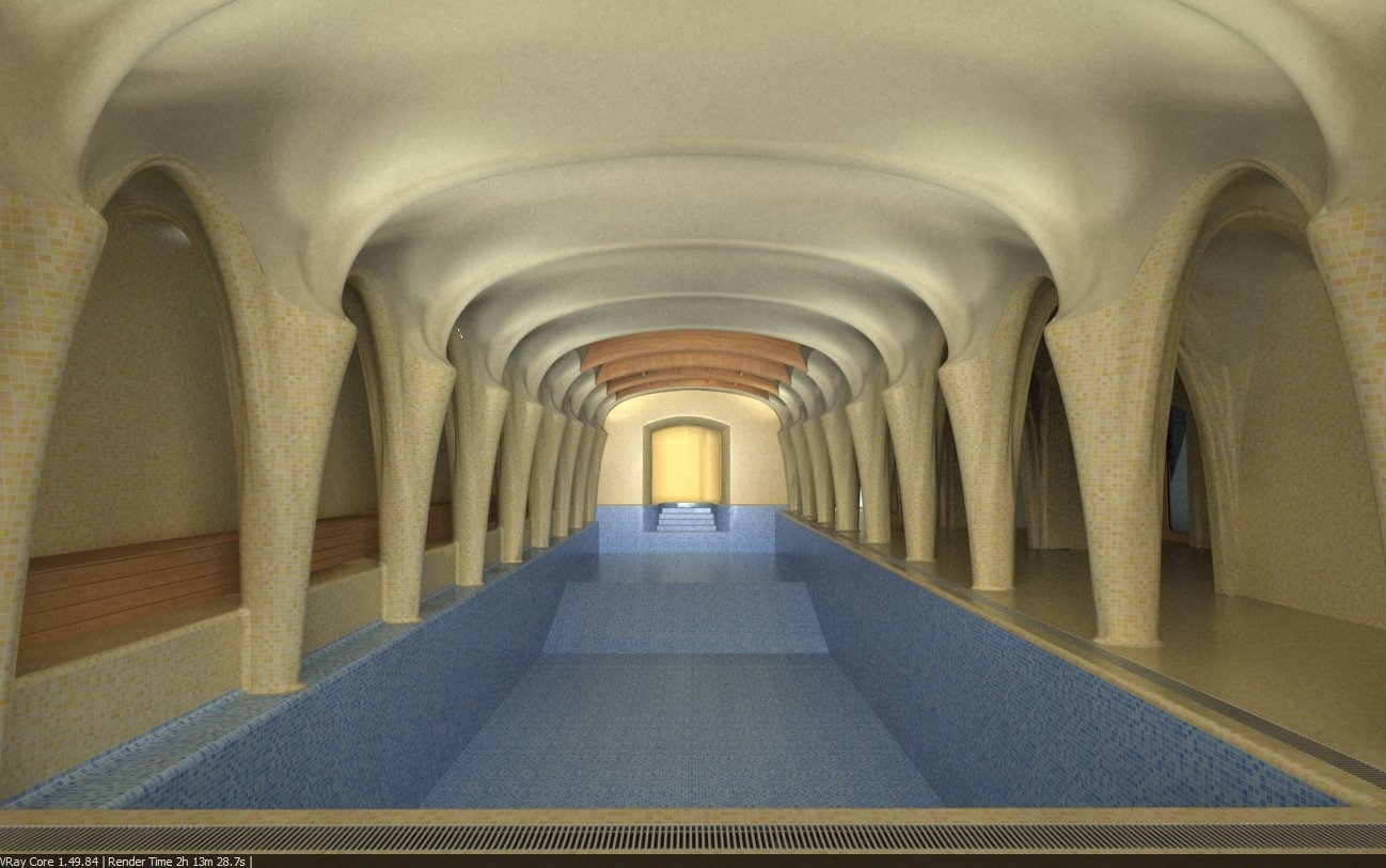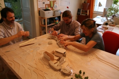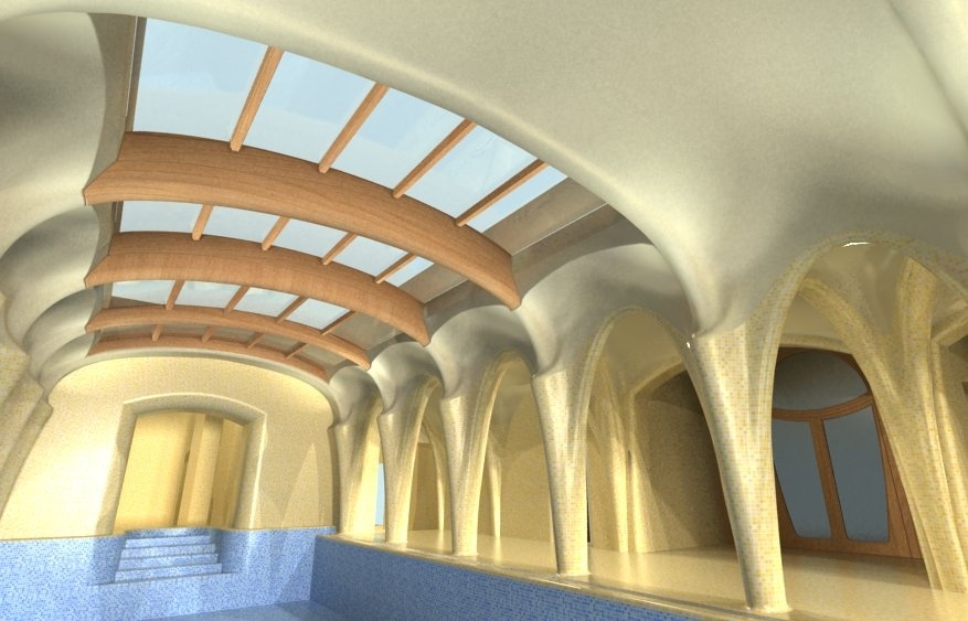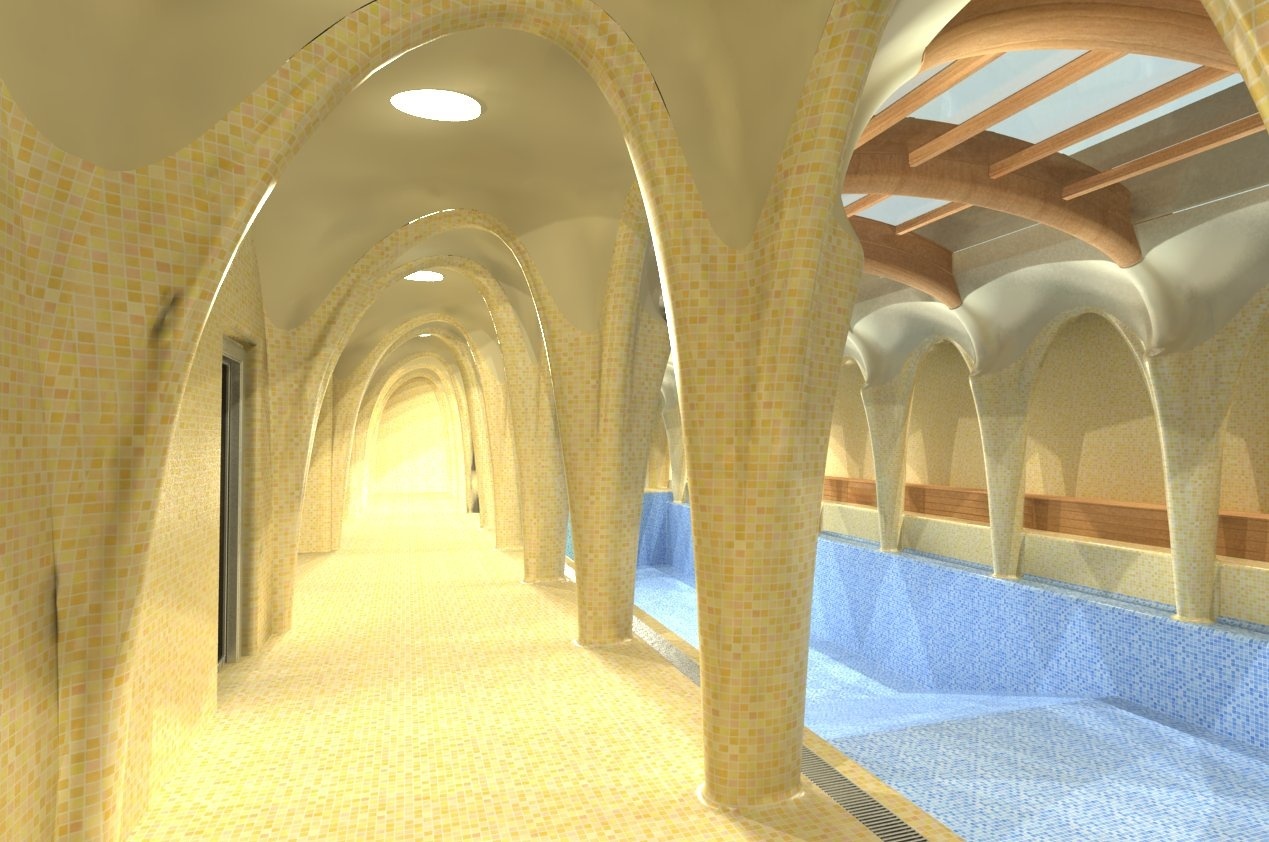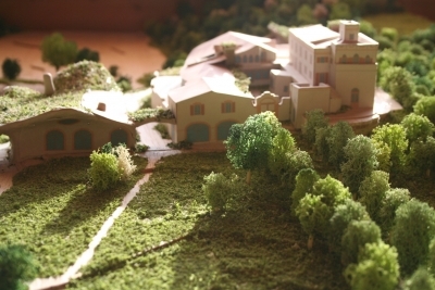 Un proyecto para un hotel holístico en El Palol, España – un centro para el desarrollo de las cualidades físicas, mentales y espirituales del hombre. Renovación y ampliación del monasterio original de El Palol, en el río Fluvia, en Cataluña, para convertirlo en un hotel con características ecológicas.
