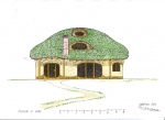 Casa de madera de bajo consumo energético hecha con materiales de construcción naturales. La casa se calentará totalmente con un horno y una estufa. El edificio se aislará con balas de paja. Hacia el interior, los muros perimetrales están revestidos con ladrillos de barro cocido. Los tabiques interiores están entramados y también revestidos de ladrillos de barro cocido. La disposición de las habitaciones interiores en relación con los puntos cardinales y el posicionamiento de la casa en el terreno se tienen en cuenta según los principios del feng shui.