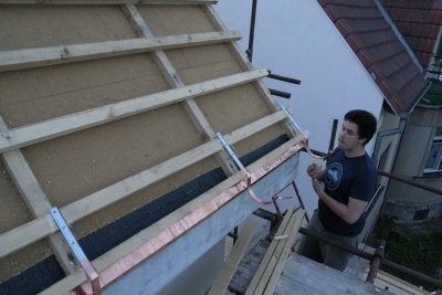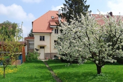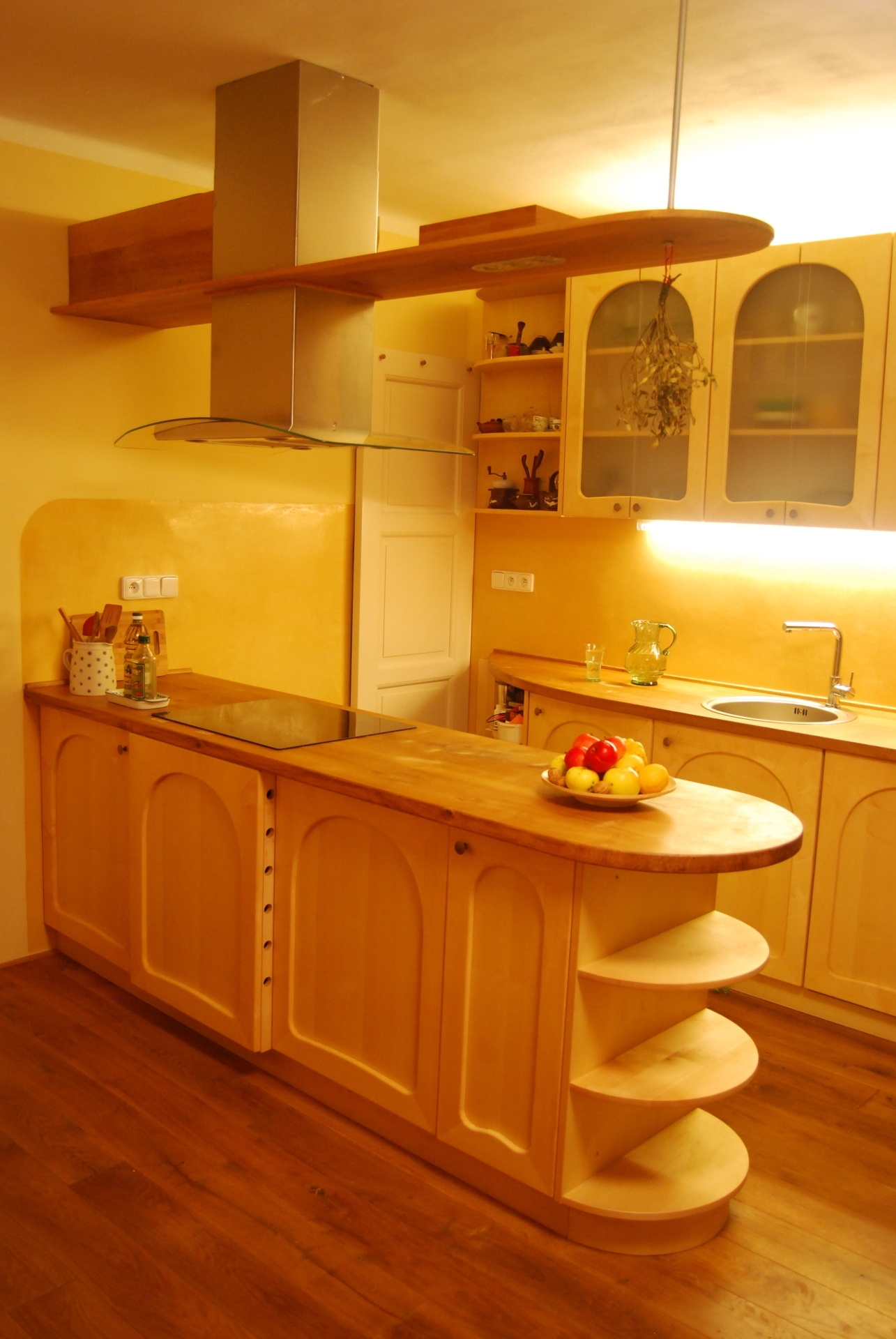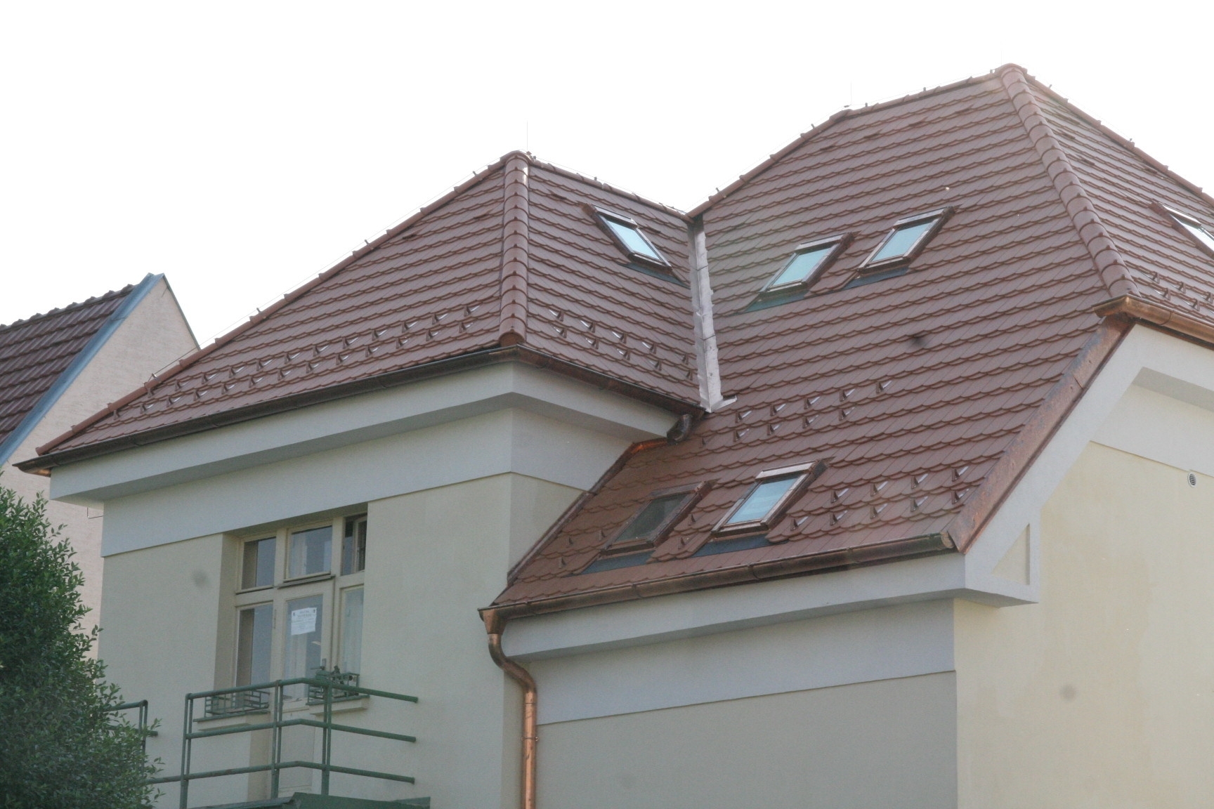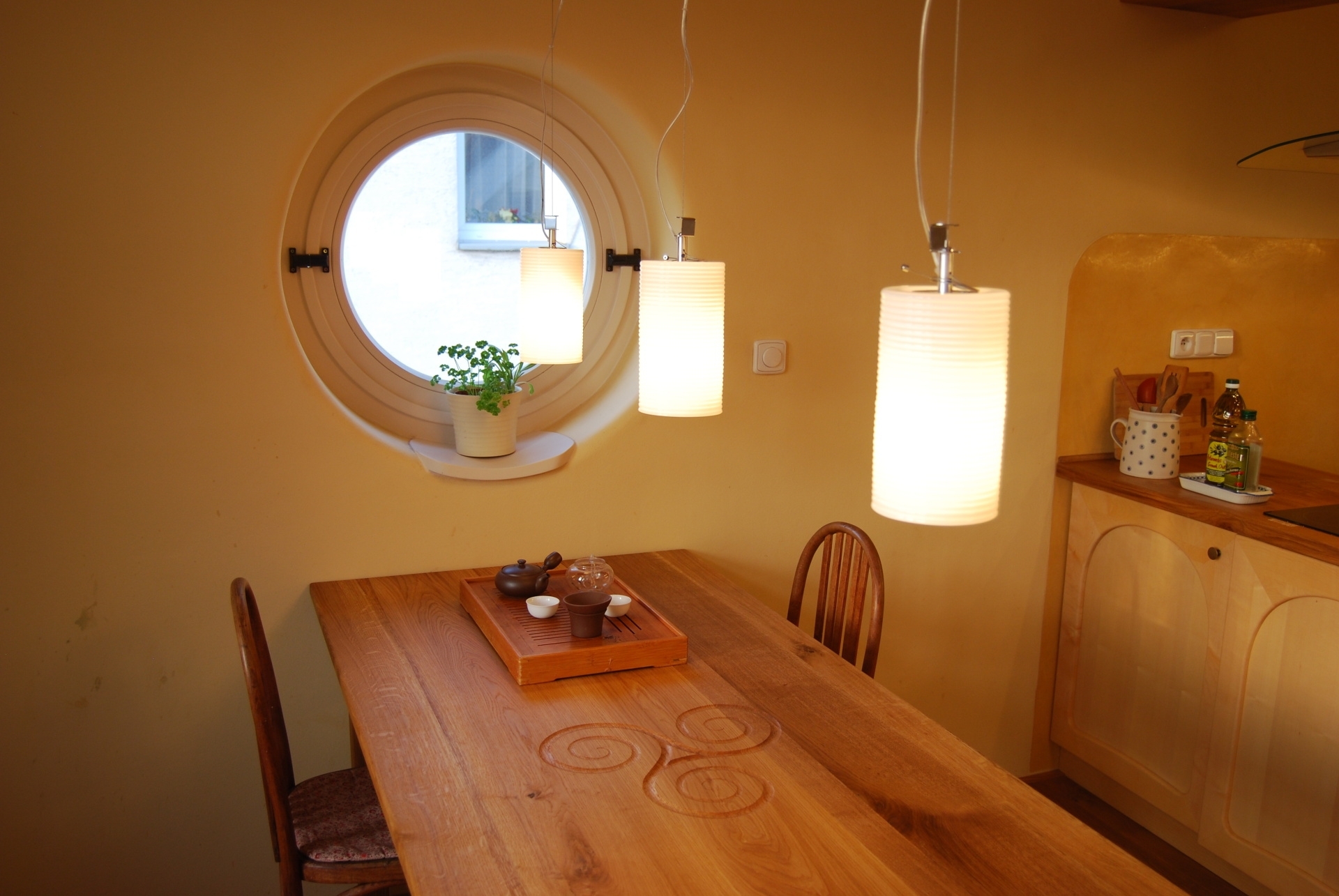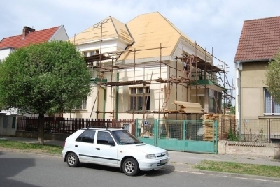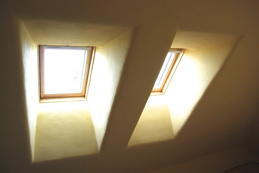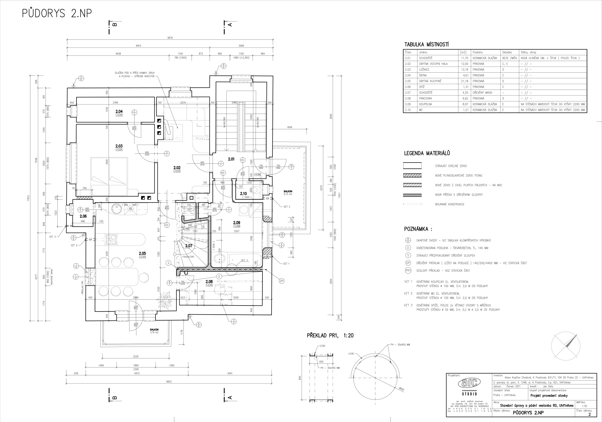 Proyecto de reconstrucción del primer piso y ático de una casa unifamiliar en Uhříněvsi, Praga 10. El edificio está construido con materiales de construcción naturales de bajo consumo energético. El revestimiento del tejado está aislado con balas de paja de cereal comprimida. Los interiores tienen yeso de arcilla y los cuartos de baño estuco marroquí.