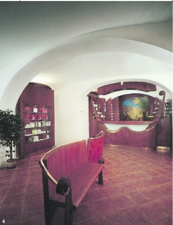 - Lékárna v Mnichově Hradišti. Interiér lékárny je navržen z přírodních materiálů, převážně z dubového masívního dřeva. Cílem bylo vytvořit prostor, který svojí atmosférou osloví duši vstupujících. Detaily nábytku jsou řešeny uměleckořemeslně. Nohy lavic a boky pultu (táry) jsou řezbářsky upravené. Na opěradle lavice a na čelní straně pultu jsou prvky z leštěné mědi. Za pultem interieru dominuje originál obrazu na téma zdraví od akad.mal. Kamila Hlubučka. Osvětlení prostoru je převážně rozptýlené, odráží se od kleneb barokního domu.