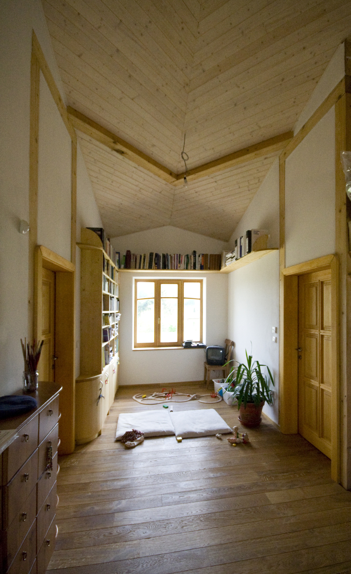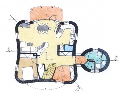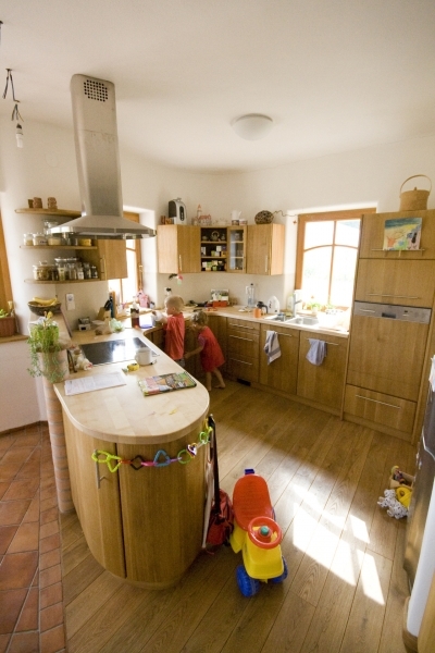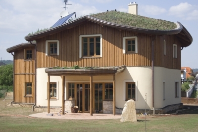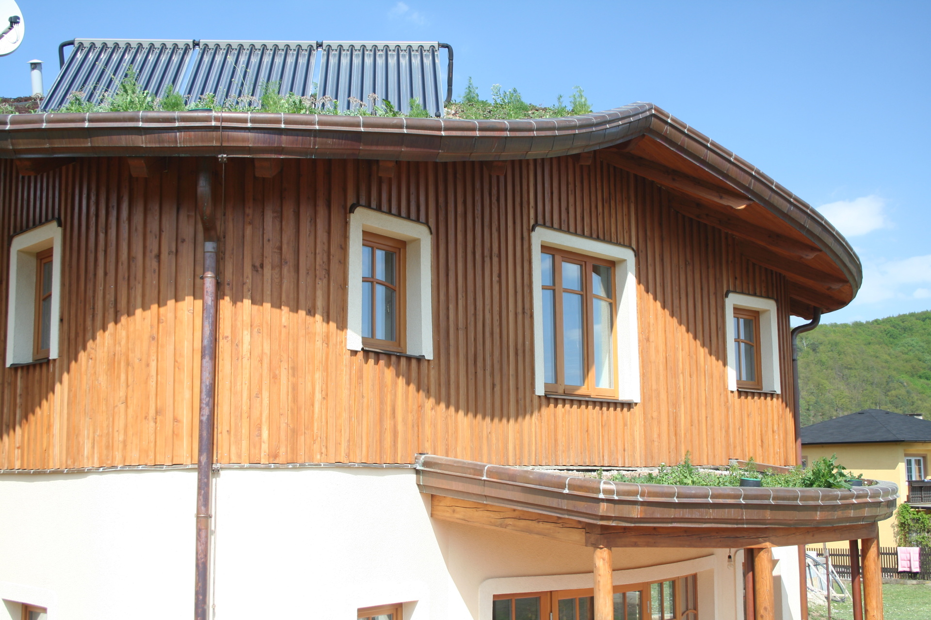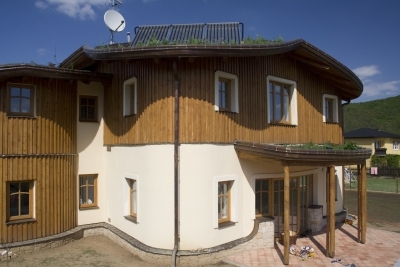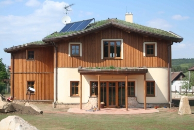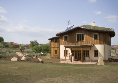 Nízkoenergetický rodinný domek v Chrustenicích obsahuje principy geomantie a feng shui. Hlavní stavba i přístavba s WC a kotelnou má energeticky úsporný ucelený tvar. Proporce půdorysů a výšky konstrukcí domu vycházejí ze sakrální geometrie čtverce a kruhu. Umístění a funkce místností v domě souvisí s pohybem Slunce po obloze. Na jižní straně jsou obytné místnosti. Na severní a západní straně jsou umístěny technické a podpůrné prostory. Uspořádání dispozice tak využívá tzv. pasívní solární zisky. Uprostřed domu je umístěna kombinovaná kachlová pec s kamny. Interiérové teplo je v chladném období akumulováno do vnitřních příček postavených z nepálených cihel a vnitřních hliněných omítek.