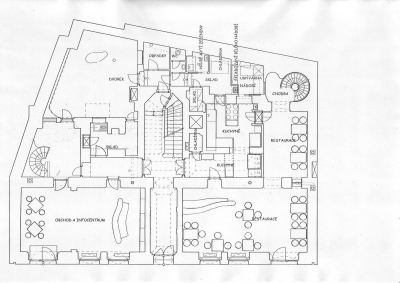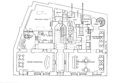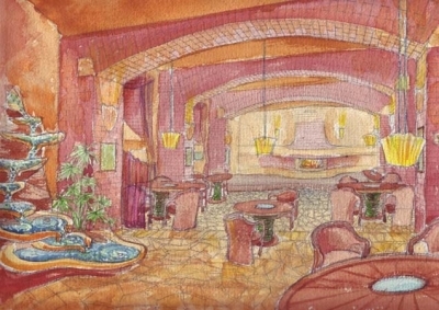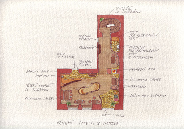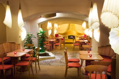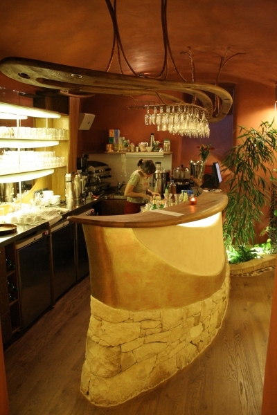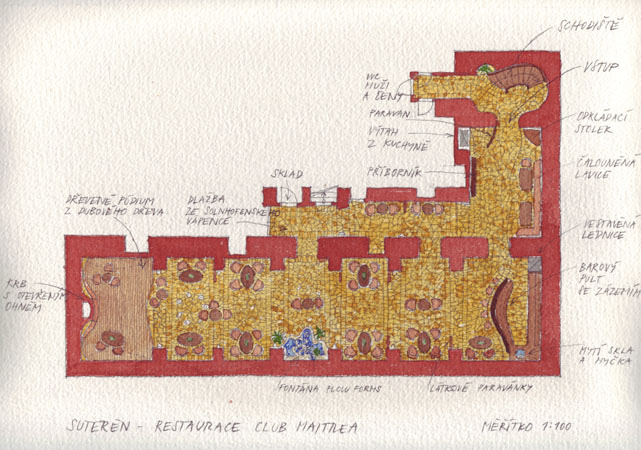 Interiéry restaurace Maitrea v Týnské uličce 6, Praha 1. Společně s klientem a provozovateli jsme si přáli navrhnout krásné a zdravé prostředí pro duši člověka. Restaurace je oázou pro občerstvení těla i duše. Interiér je navržen z přírodních materiálů a byl vytvořen na základě principů feng shui. V prostoru restaurace je několik uměleckých děl, například fontány a krb.