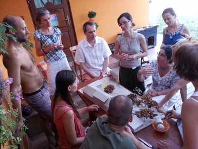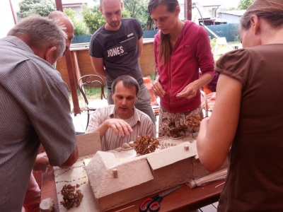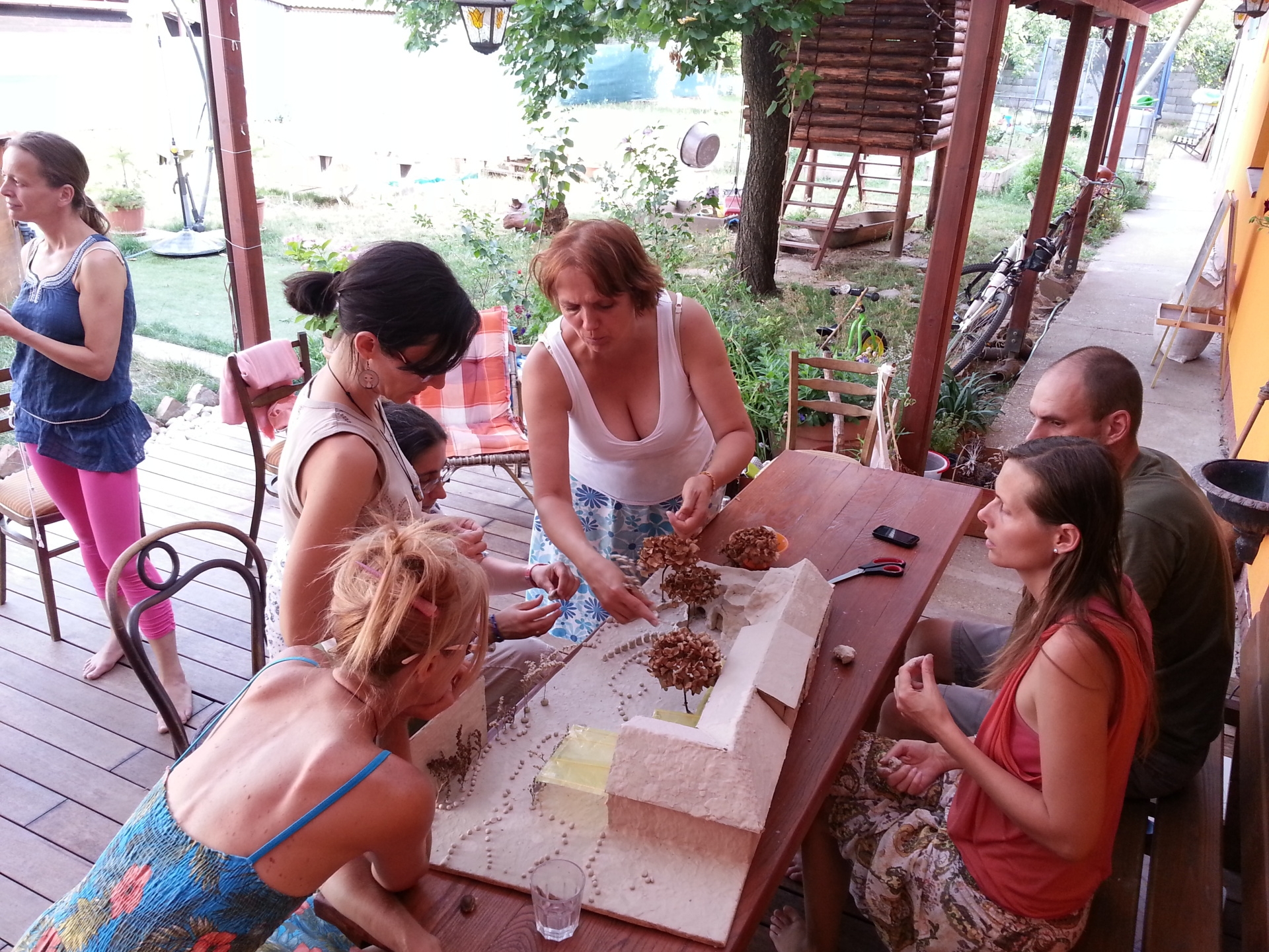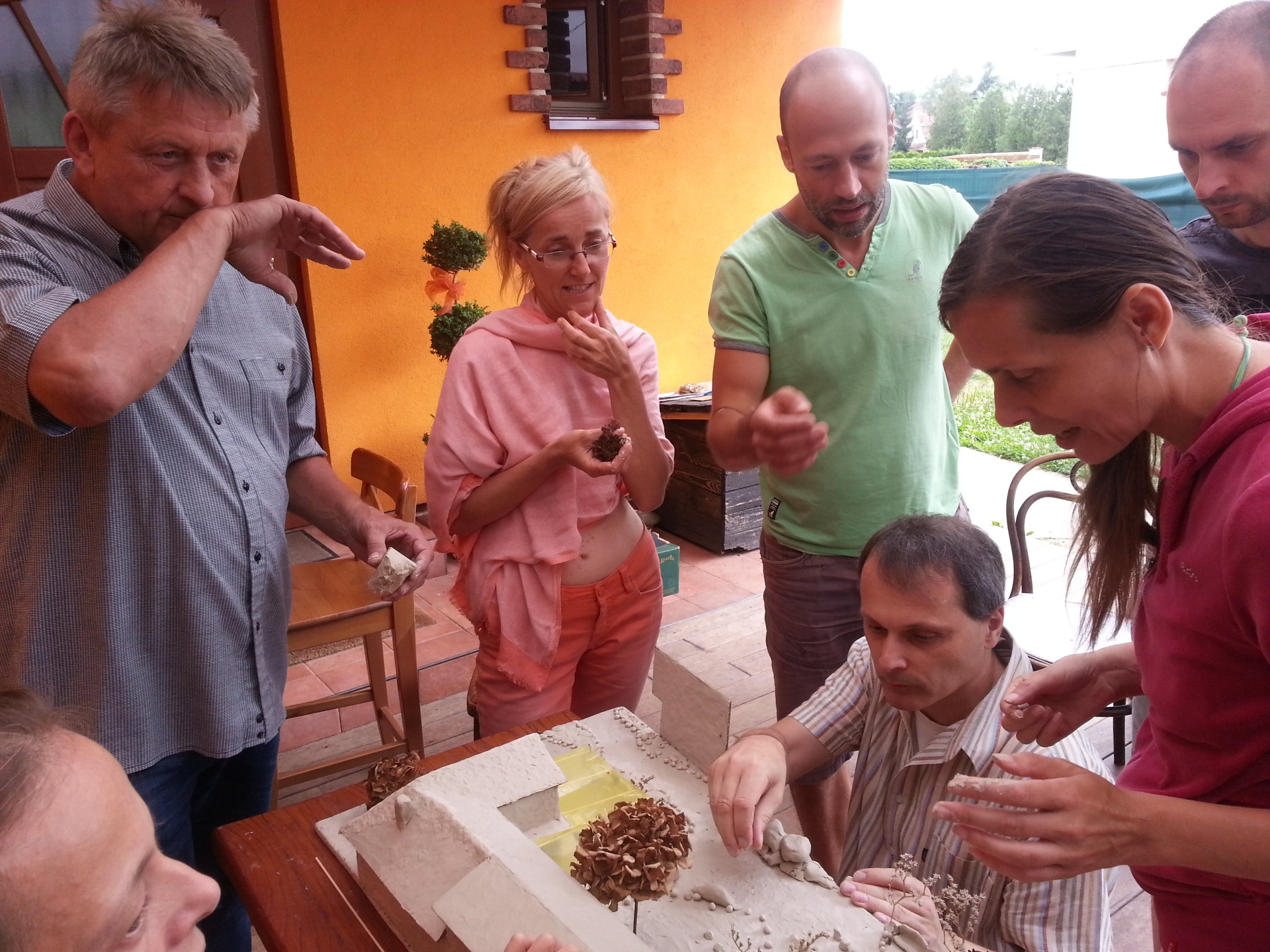 Na základě rozvahy o počtu místností a jejich orientaci ke světovým stranám jsme začali vytvářet model domu. Metoda společné práce umožňuje do procesu návrhu vnést nejenom síly myšlení, ale také síly cítění a vůle. Každý z členů rodiny vnáší do procesu tvorby modelu živost a radost. A velmi dobře vyciťuje souvislosti a navazuje na práci druhých. Tak se vytváří postupně společná shoda nad vznikem rodinného domu. Všichni zúčastnění se mohou lépe duševně spojit se vznikajícím návrhem.