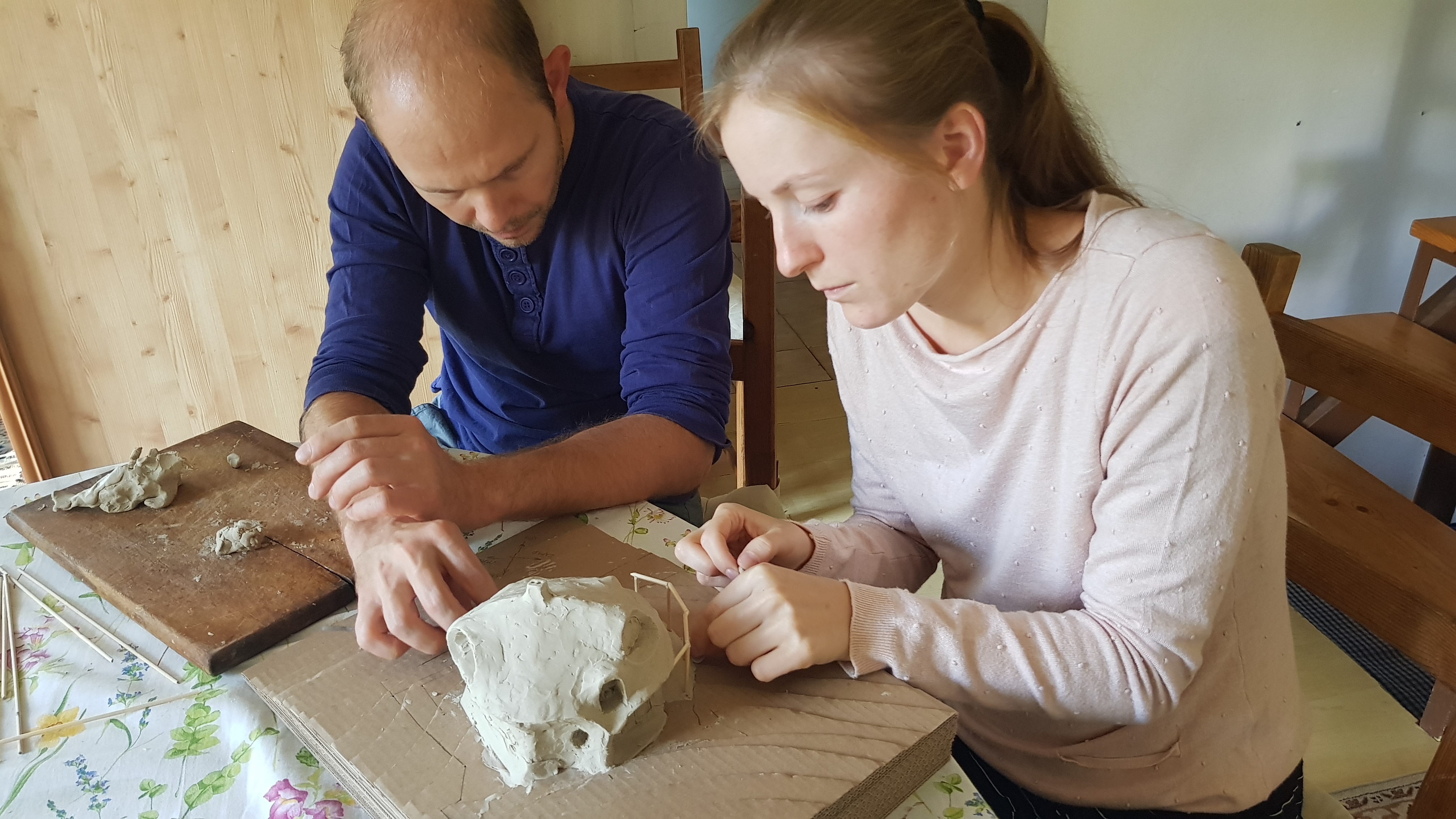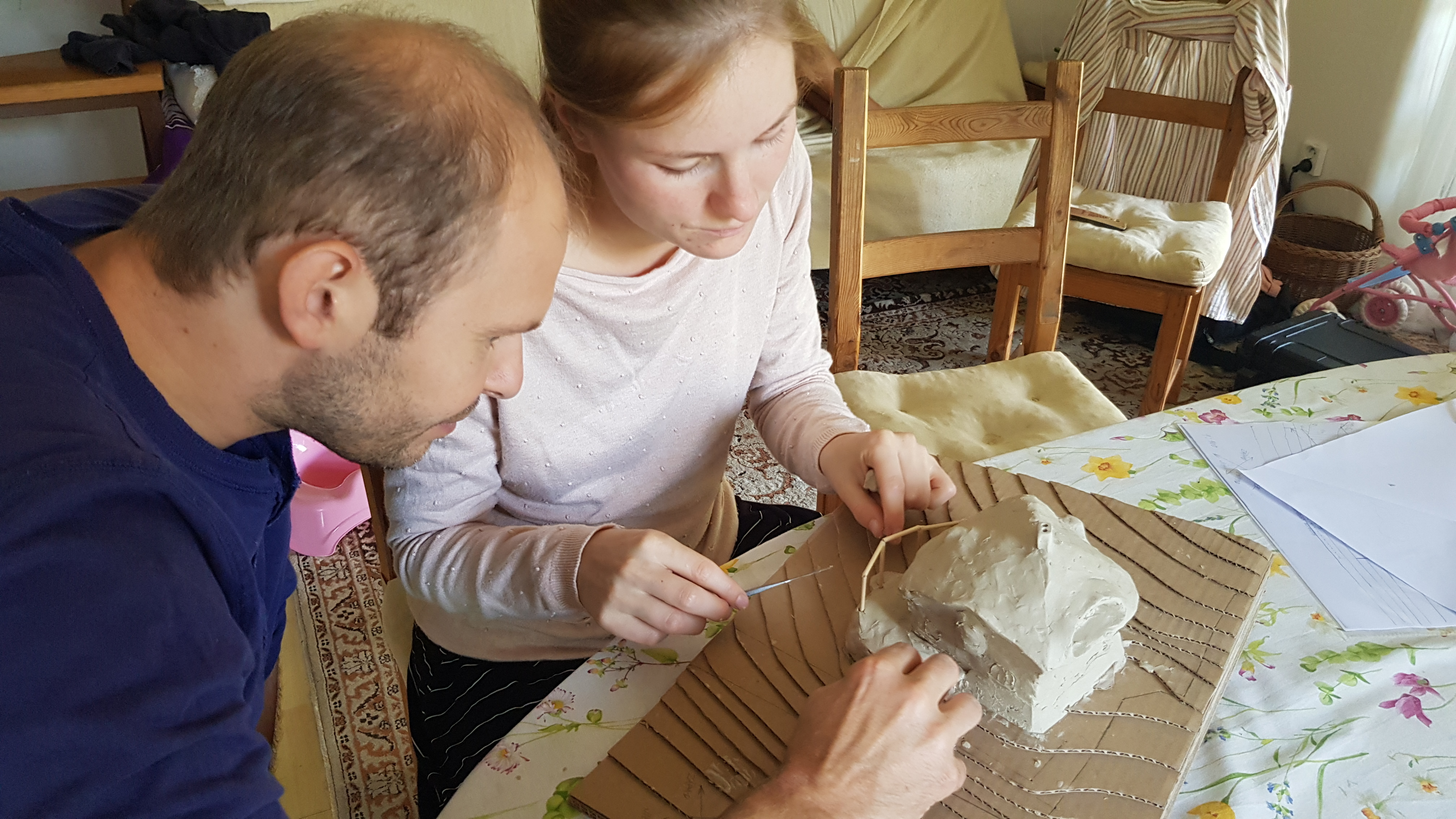 Při práci s hlínou při modelování vzniká určitá klidná soustředěná nálada. Přitahuje také pozornost dětí, které vnímají síly inspirace, jež do procesu společné tvorby vstupuje.