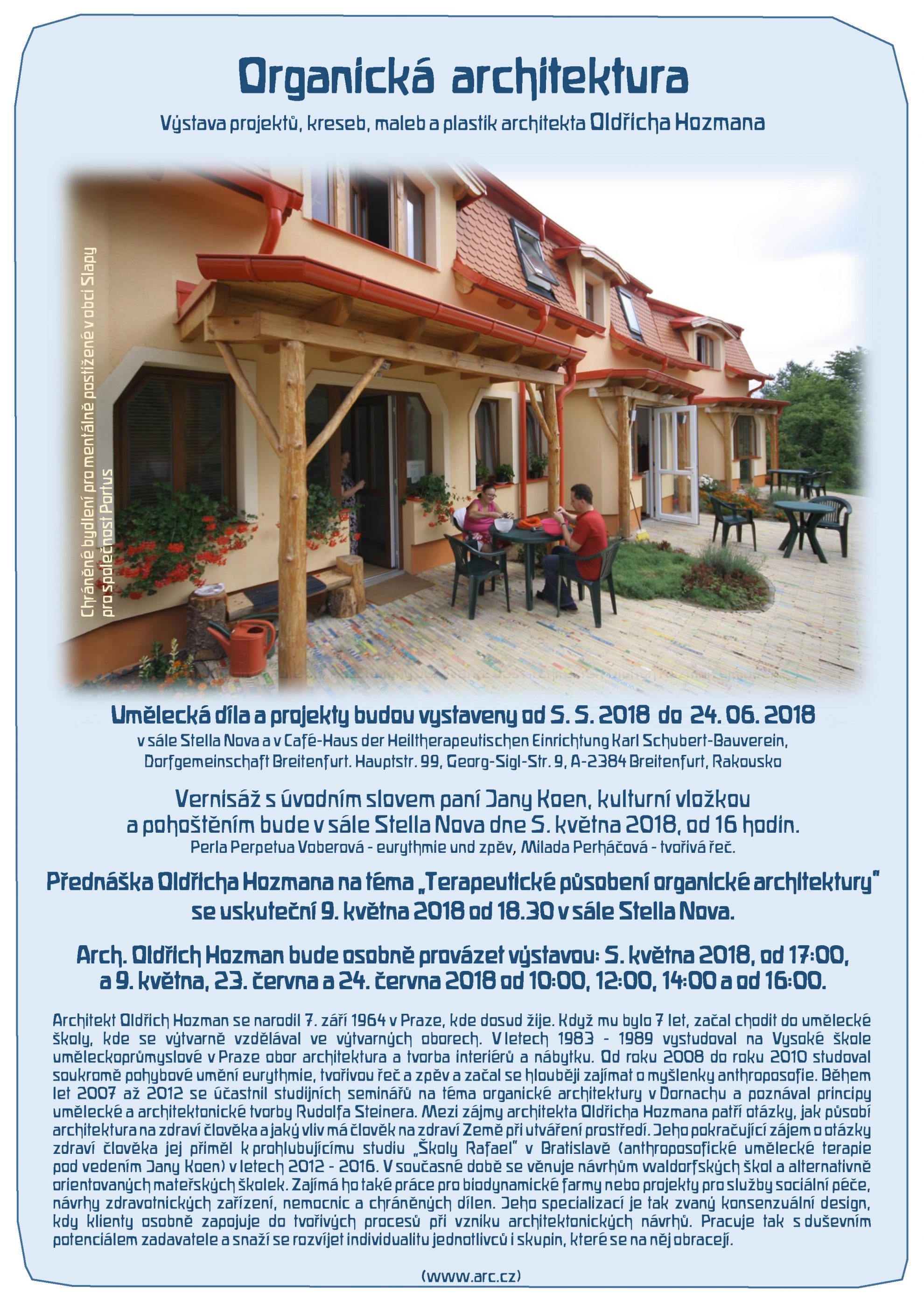 Přednáška Oldřicha Hozmana na téma „Terapeutické působení organické architektury“se konnala 9. května 2018 v 18:30 hodin.
